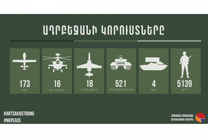 В результате широкомасштабной агрессии и военных действий, развязанных Азербайджаном с 27 сентября против Республики Арцах, противник понес большие потери живой силы - 5 139 человек.