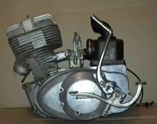 Ну и главным его плюсом был двигатель, который имел отличные по тем временам технические характеристики, о нем сегодня и пойдёт речь. Мотоцикл начали производить в 1987 году и все это время на него устанавливали один вид мотора. Он был одноцилиндровый с двумя тактами работы. Его рабочий объём равнялся 345 кубическим сантиметрам, мощность была 22 л.с., это при оборотах двигателя в 4800. Охлаждался двигатель встречным потоком воздуха. Работал мотор на смеси масла и бензина, соотношение должно было быть 1 к 30, а рекомендованная марка топлива была А 76. На 100 километров двигатель потребляет около 6-7 литров горючего.