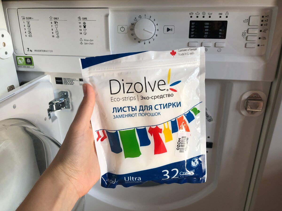 На одну стирку нужно всего половинка листика - класть его надо прямо в барабан: