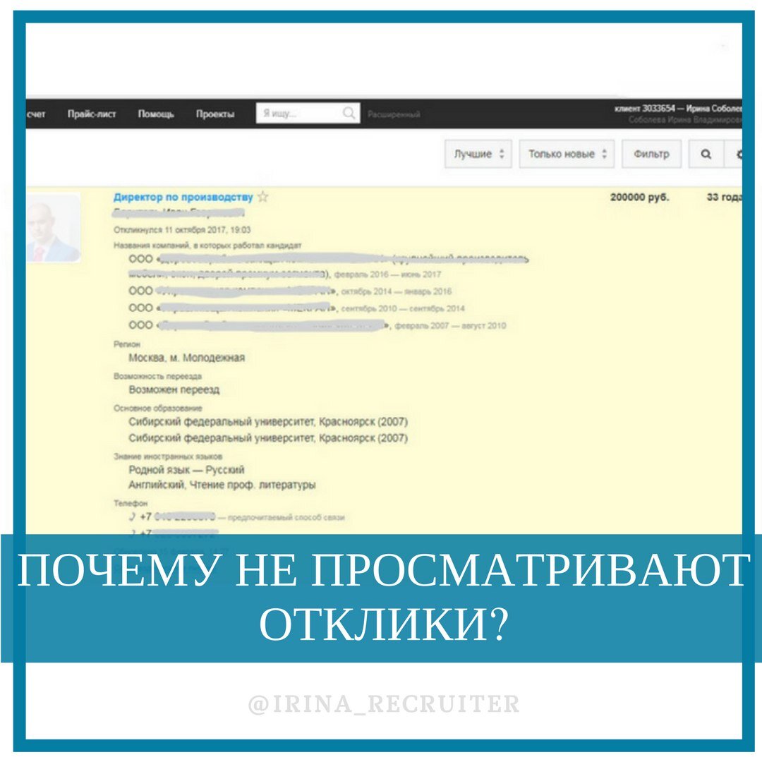 ⠀Почему отклики не просматриваются? Несколько причин. Первую (вакансия вялотекущая) я описала выше. Вторая причина (довольно частая) в том, что на самом деле рекрутер просмотрел ваш отклик, но просто не открыл резюме. На работных сайтах можно настроить выдачу резюме так, что видно практически полное резюме за исключением обязанностей. И по этой информации вполне можно составить представление о кандидате. Особенно актуально, когда есть жесткие требования. ⠀
