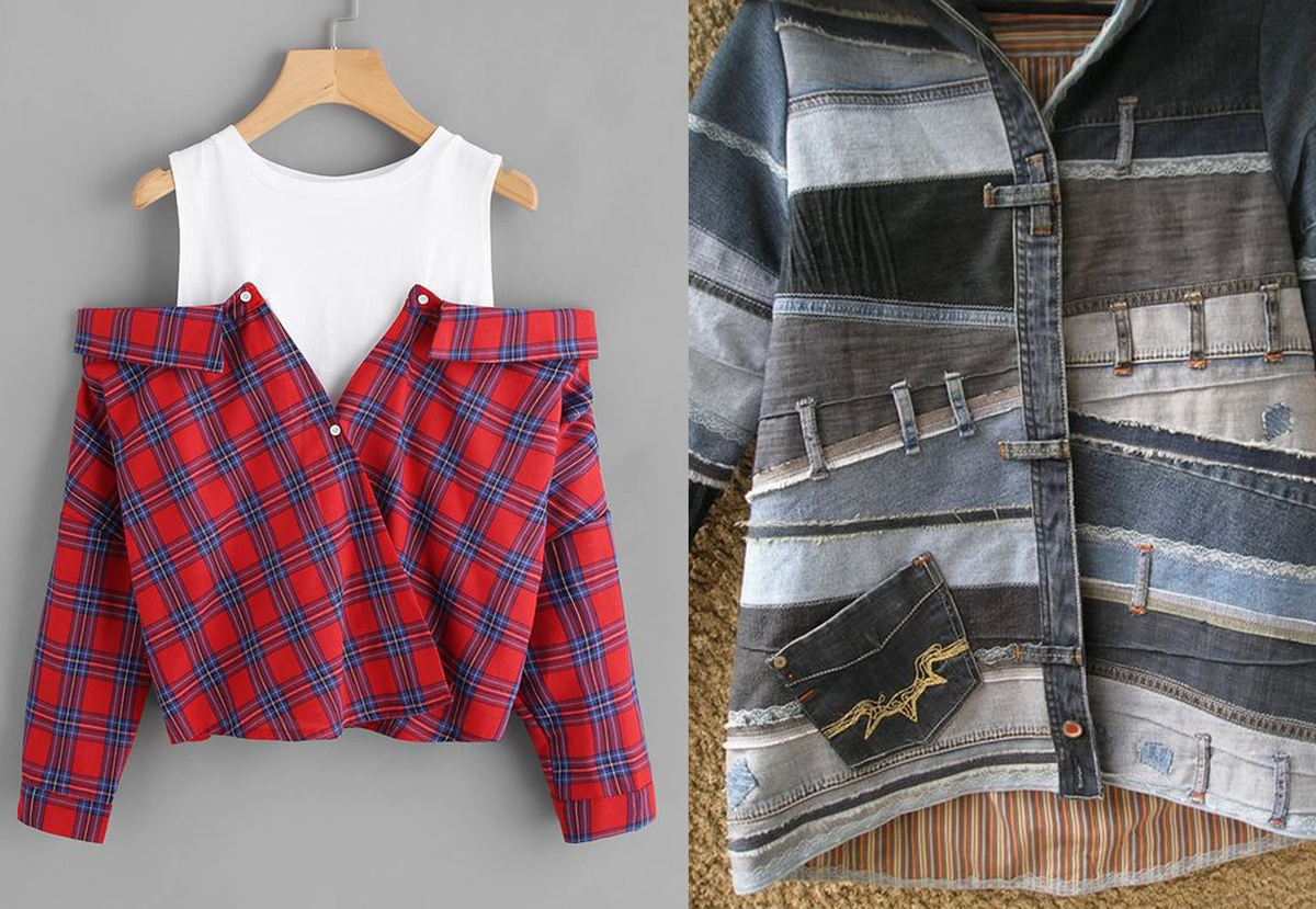 Отличный способ сохранить жизнь сразу 2 старым вещам: соединить их в одну! Совмещать можно что угодно: рубашки, майки, платья, юбки и т.д. Чем контрастнее вещи – тем интереснее сочетание!