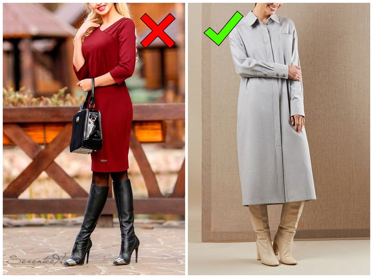Мы уже обсуждали в отдельной статье антитренды осенней обуви, но пару слов всё же хочется сказать. Часто на улицах можно встретить ботильоны, как на фото слева - нередко они оказываются еще и в компании платья из первого пункта. Помним о том, что танкетка и толстая подносочная платформа сегодня не актуальны. А вот хорошие модели всегда можно поискать на Яндекс.Маркете: