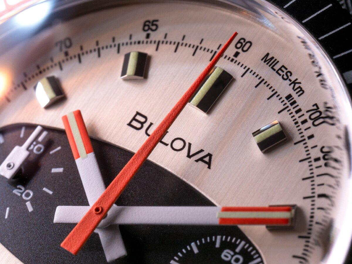 Я так понимаю, Bulova решила пересмотреть всю свою классику, которая когда-то была популярна. Иначе как объяснить выпуск сразу нескольких в своё время культовых моделей? Сегодня мы как раз поговорим об одной из них - хронографе Surfboard. Рекомендую просмотреть видео-обзор, где вы увидите часы в действии. Итак, это новый хронограф от известной американской компании с многолетней историей. Именно поэтому сам Surfboard выходил ещё аж в восьмидесятых, когда и сыскал популярность благодаря своему циферблату. Собственно эта тёмная вставка как раз и привела к подобной кличке. Как ни странно, он смотрится совершенно к месту и не выглядит аляповато. При этом дизайнеры умудрились сохранить общее ностальгическое настроение. Только взгляните на дизайн стрелок и сам шрифт цифр. Всё выглядит как будто так и осталось после оригинальной модели. Кстати, обратите внимание, что здесь на выбор три расцветки, так что вы наверняка найдёте что-то подходящее. В часах есть и скрытая "изюминка". На фото выше