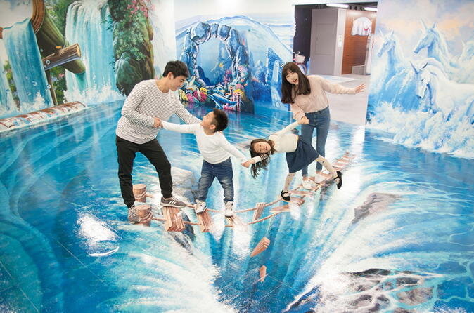 В первую очередь, конечно же, это не то место, куда стоит идти в одиночку, потому что главная фишка музея - фото. Соответственно, кому-то нужно вас фотографировать, именно поэтому берите с собой спутника.) Этот музей очень притягивает любителей оригинальной фотографии. Сфоткаться на фоне извергающегося вулкана, стоя по разные стороны обрыва и протягивая руки друг к другу, или, например, в прямом смысле слова оседлать дельфина или единорога~ Часть артов действительно впечатляюще красивая!