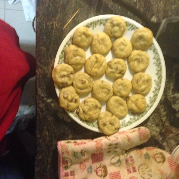 - Взбейте сливочное масло, белый сахар и коричневый сахар до однородной массы. Вбивайте яйца по одному, затем добавьте ваниль. Растворите пищевую соду в горячей воде. Добавить в кляр вместе с солью. Добавьте муку, шоколадную стружку и орехи. Высыпать большими ложками на несмазанные сковороды.