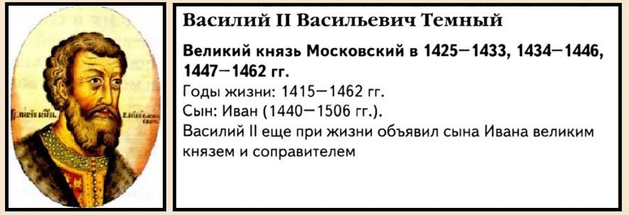 - Борьба Василия Темного с детьми Юрия – Василием Косым и Дмитрием Шемяка.