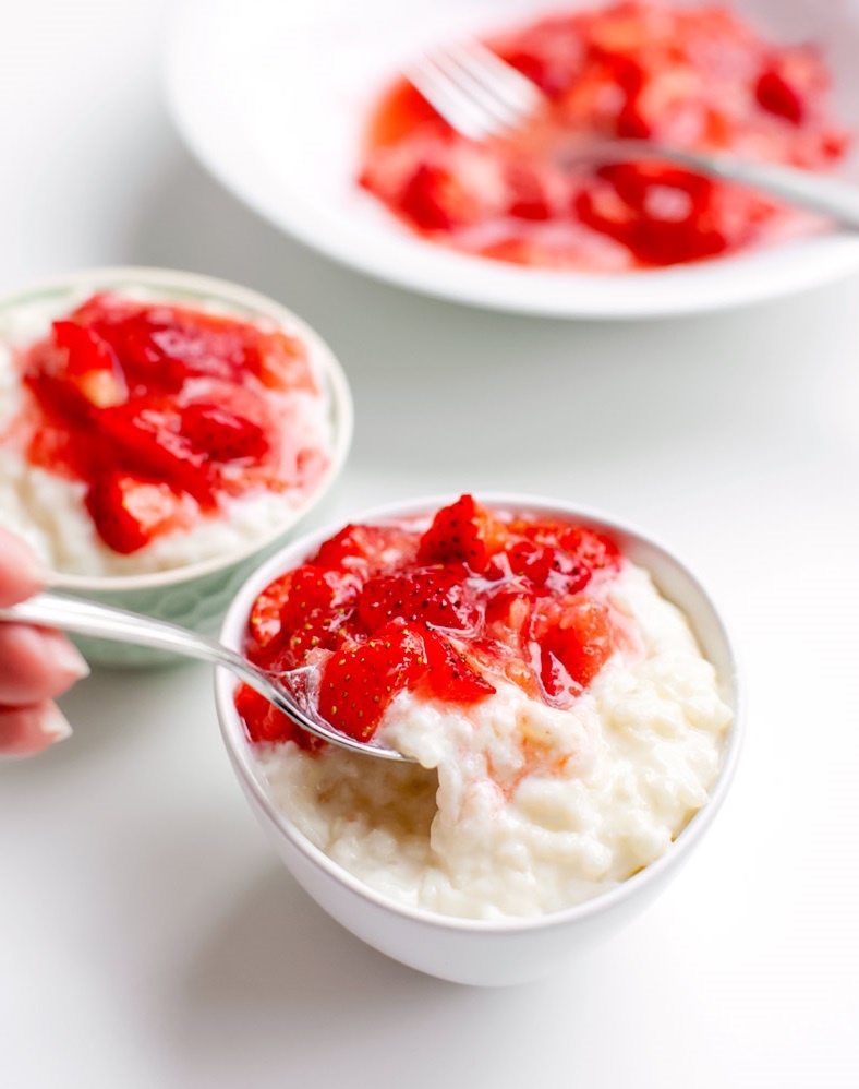 В широкой кастрюле растопите масло. Добавьте молоко, рис и соль.