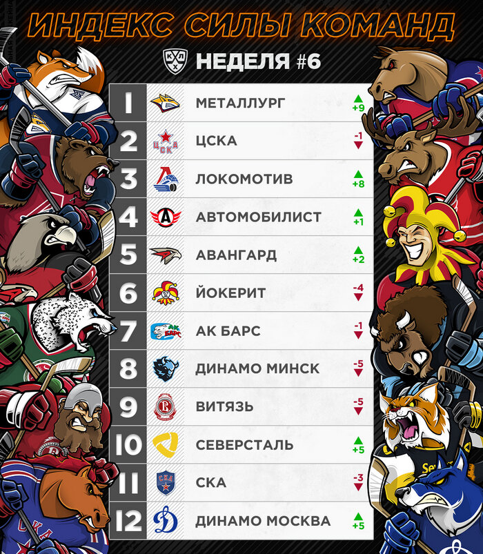Индекс силы – это рейтинг, подсчитывающийся математически на основе показателей в текущем сезоне. Регулярный чемпионат все команды начали с одинаковым количеством баллов; за победу в основное время одна команда отнимает у другой 25% ее