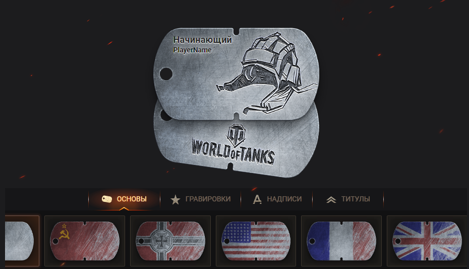 Аналогично этапным декалям и отличительным отметкам, личные жетоны отражают вашу страсть к игре и непоколебимую волю к победе. Мы надеемся, что вам понравится настраивать личный жетон и демонстрировать противнику, насколько вы хороши в World of Tanks!