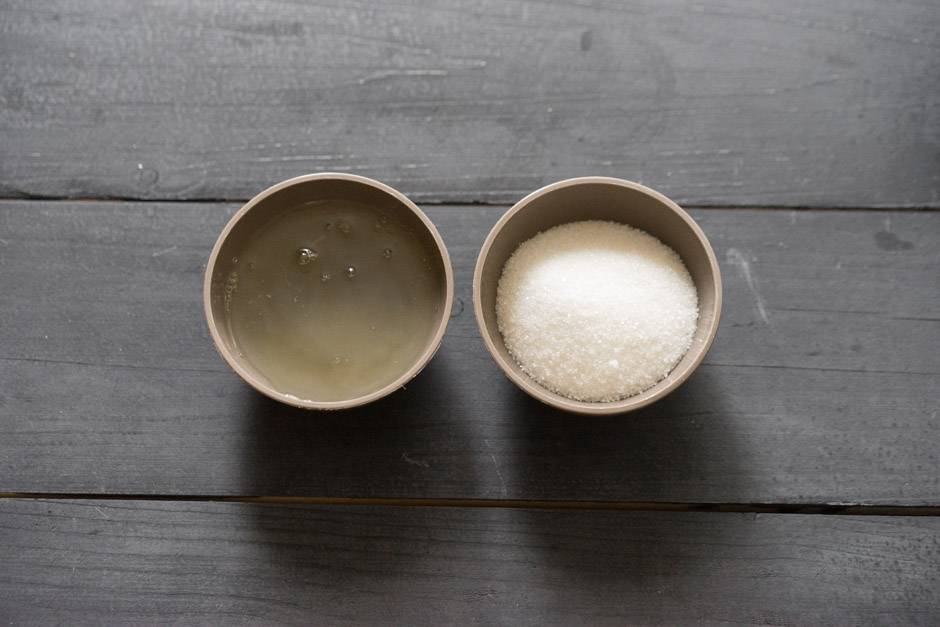 Сотейник наполняем водой, добавляем сахар и ставим на огонь.