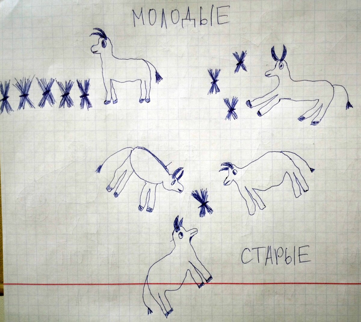 На ферме есть стадо, состоящее из 100 коров. В этом стаде есть и молодые, и старые особи. За день животные съедают 100 охапок корма. Некоторые молодые коровы едят только стоя. В таком случае на 1 особь уходит 5 охапок в день. Другая часть молодого поголовья питается исключительно лежа. Эти ленивые особи съедают 3 охапки корма в день.