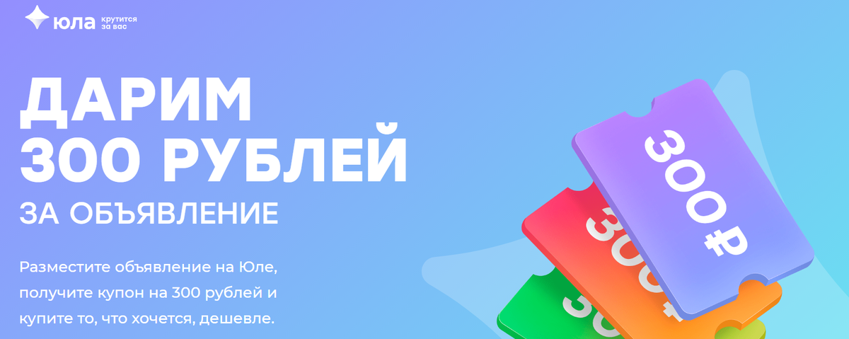 Все знают этот сервис, но не все знают про новые купоны от юлы. Юла сейчас раздает купоны на 300р за объявления. Вы выставляете любое объявление и получаете купон. Этот купон дает скидку в 300р на товар стоимостью от 500р. Работает только через безопасную сделку и имеет срок годности. На один аккаунт дают 3 купона, но бывает, что дают даже 6, если Вы продолжаете пользоваться сервисом. Акция продлится до конца октября, лучше поторопиться.