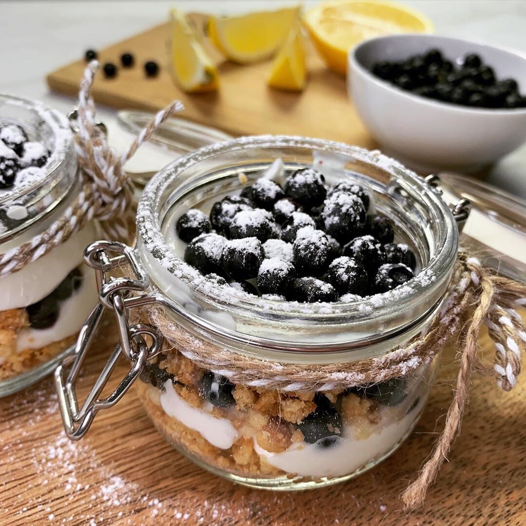 Иногда дождливыми вечерами хочется чего то сладкого. А когда под рукой ещё и свежие ягоды, прямо из леса, почему бы не сделать вкусный и простой десерт, а формат «в баночке » сделает этот десерт ещё интереснее: