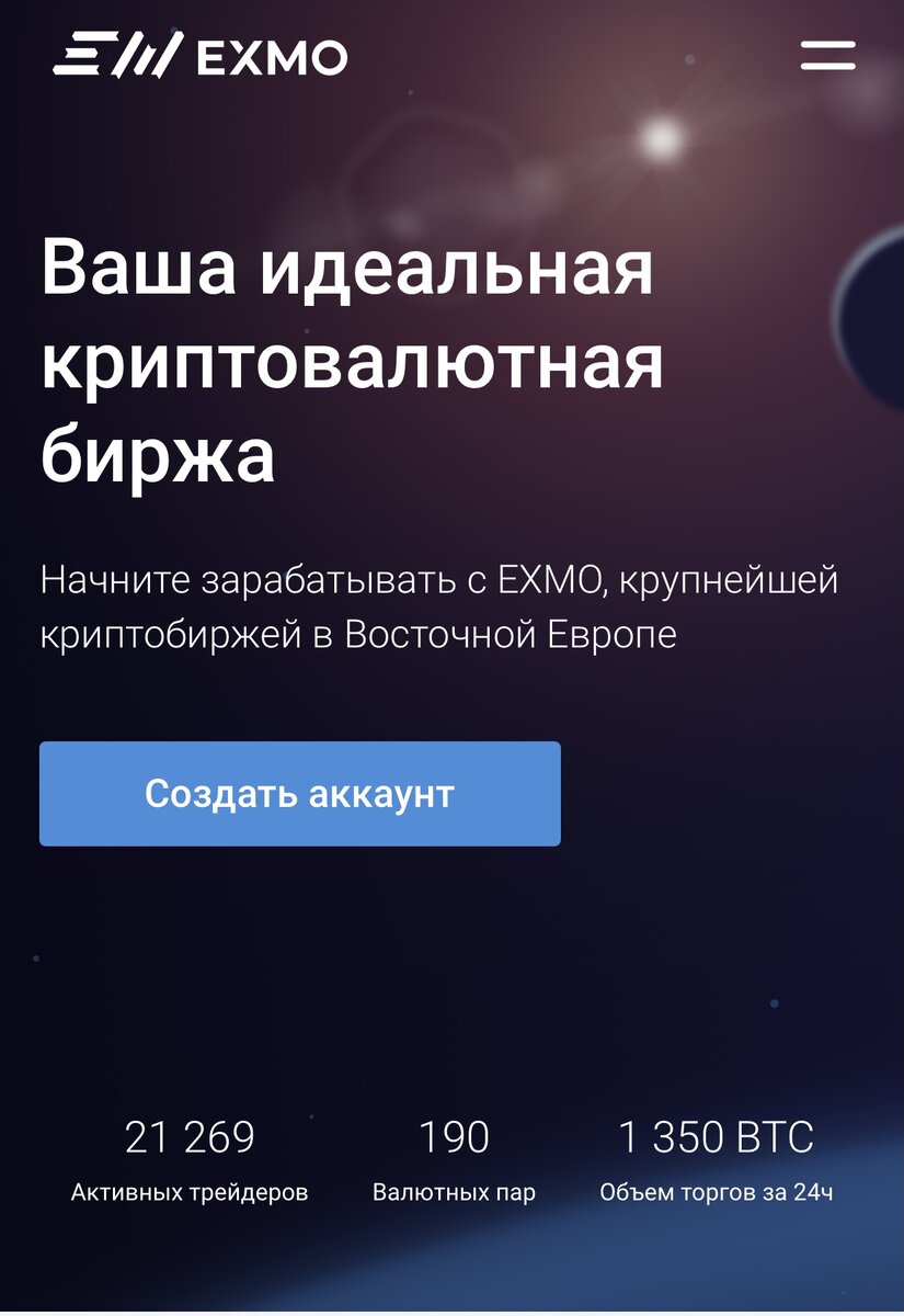 Если вы дочитали до этого момента, значит можно начинать с самого главного, а тоесть с названия этой криптовалютной Биржи. Exmo.me - это и есть платформа, с которой проще всего начинать свою деятельность в этой сфере.
