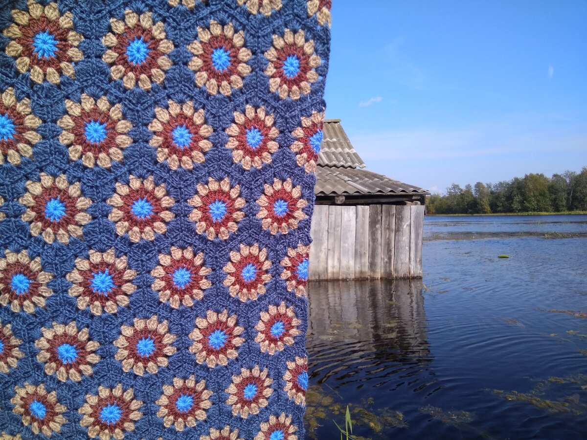 Именно там и расплескалось по его подросшему полотну морская гладь. Разве это не волшебство? Разве не вдохновение? Я смотрю сейчас на эти фотографии и удивляюсь сама себе - моё ли это творение? Столько северной природы, будто само собой, осталось в моём пледе.