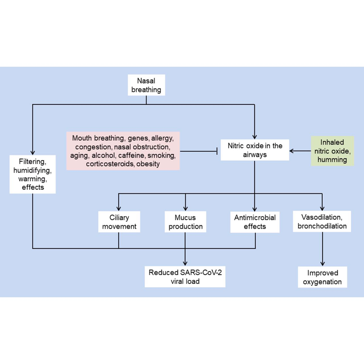 5️⃣Также после вирусной инфекции эпителиальных клеток дыхательных путей постоянное или прерывистое дыхание ртом в дневное время и во время сна может снизить уровень NO и его воздействие на вирус, что приведет к беспрепятственной репликации вируса (рис. 1). Следовательно, дыхание через рот во время сна может ухудшить симптомы COVID-19, что согласуется с наблюдением, что симптомы респираторных инфекций обычно усиливаются утром.