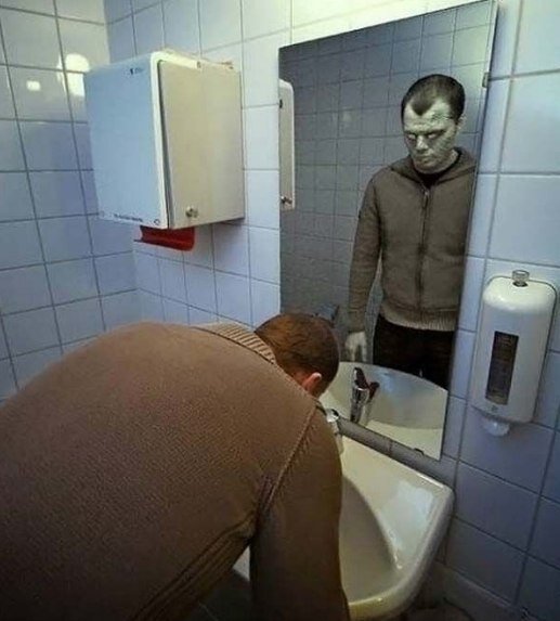 В общем, почистив зубы, я заметил, что в моем отражении что-то не то. Нет, на моем лице не было шрамов, рот не был разрезан и в нем не отражались демоны.