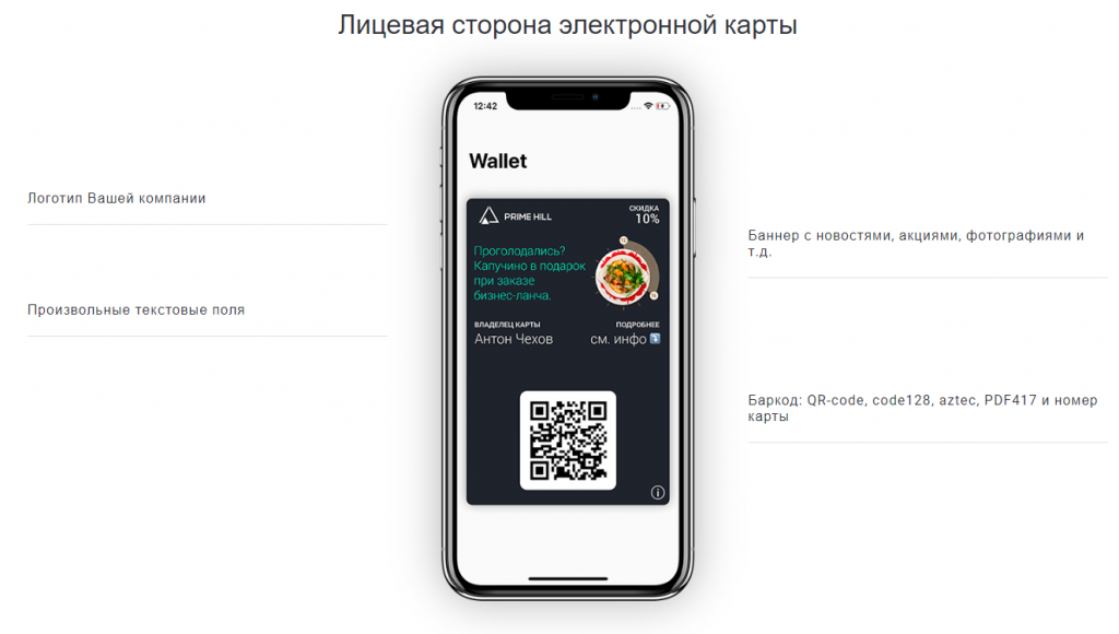 Электронные карты. По сути, это одновременно бонусная и дисконтная карта, хранящаяся не в кошельке, а в смартфоне вашего гостя. Гость считывает QR код, проходит по ссылке или заполняет анкету, и карта прописывается в его телефоне. Карта хранится в так называемом «электронном кошельке» – Wallet (iOS), приложения из маркета для Android WinPhone. Выдача электронных дисконтных карт происходит полностью в автоматическом режиме и персональные данные ваших клиентов сразу попадают в вашу CRM-систему без участия персонала.