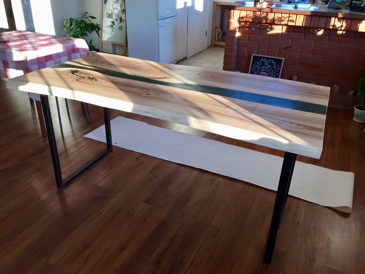 После того как слэбы высохли. Я их отфрезеровал и отшлифовал до состояния полированной древисины. Зернистость или (градация) кому как удобно, была от 100 до 3000. Хотя после 1000, я уже не видел разницы. Шлифовал машинкой со 125 кругами. Пробовал ленточной машинкой, но не стоит. Ленточка очень глубокие полосы оставляет и потом уходит много времени на их удаление.