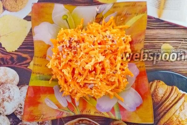 Готовый салат с морковью и сыром украсить семенами кунжута. Приятного аппетита.