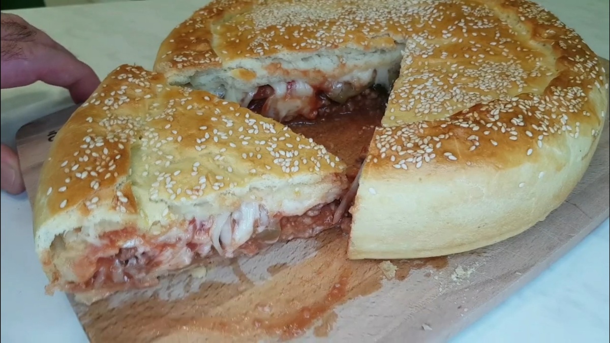 Подвернуть края, смазать желток и посыпать кунжутом
