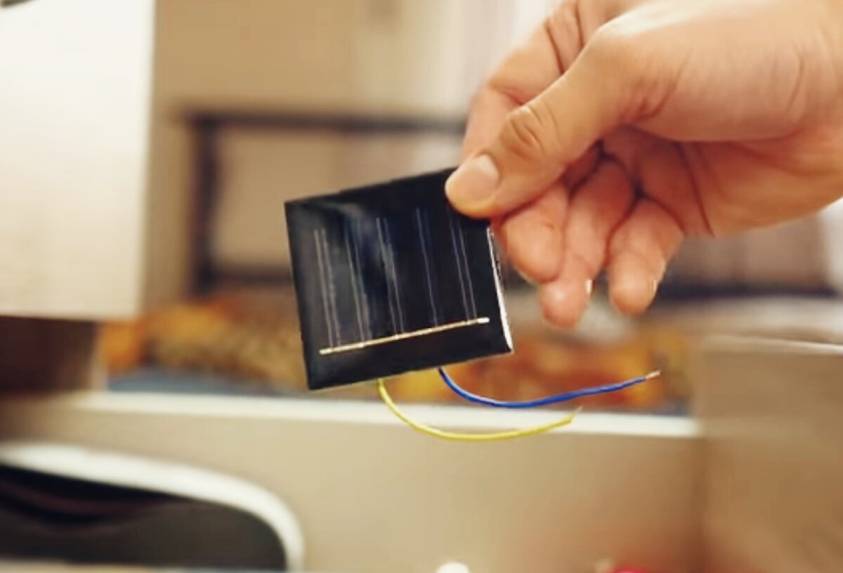То что нужно ее мы и будем использовать. Она способна вырабатывать электричество всего лишь благодаря попаданию на нее света. В зависимости от яркости источника света, вольтаж будет либо уменьшаться, либо повышаться. К сожалению конкретно моя батарея способна вырабатывать всего до 3-4 вольт энергии, а это с трудом хватает даже для зажигания обычного светодиода.