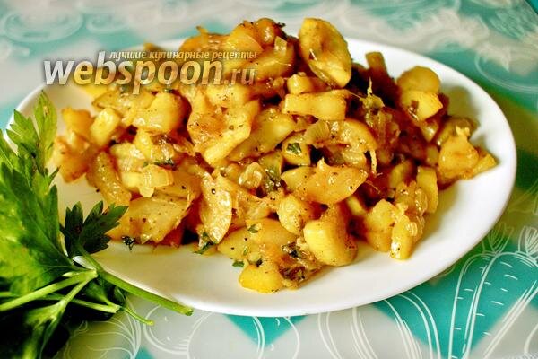 Выложить в сковороду лук, перемешать, он должен пропитаться пряностями.