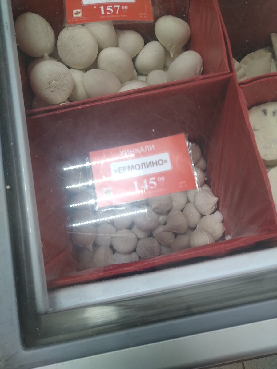Очень редко хожу за продуктами в сеть "Ермолино". Поэтому, до сих пор очень много их продуктов я не пробовал. Могу отметить, что у них очень крутые блины на молоке. Особенно с творогом, которые маленькие, скрученные на конверт. Давайте перейдем к нашим хинкали.