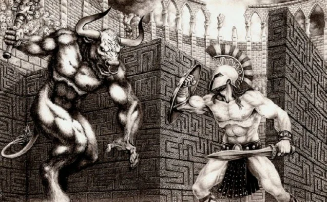 Желая избавиться от ребенка-урода, изначально названного Астерионом, царь поселил его в этом самом Лабиринте и кормил его людьми, отдавая на съедение 7 девушек и 7 юношей, которых ежегодно ему присылал в виде кровавой дани царь Эгей. И только сыну Эгея Тесею удалось сразить чудовище, а найти выход — привязанная ко входу в Лабиринт нить, которую передала храбрецу влюбившаяся в него дочь Миноса Ариадна. Любопытно, однако, что древние греки — потомки критян и ахейцев, относились к сказаниям о Минотавре с немалой долей сомнения, полагая, что обозначенная легенда появилась спустя много лет после смерти Миноса.