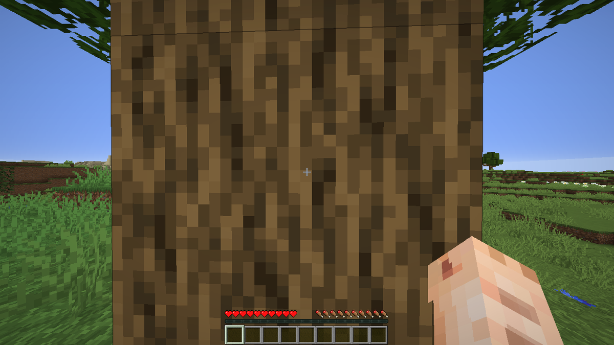 Подходим к дереву в упор, и зажимаем ЛКМ(Левая Клавиша Мыши)