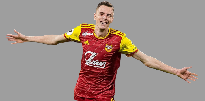 Речь идет об Артеме Максименко, выступающем за "Велес". Парню 22 года, универсал в атаке. Его частенько задействуют на фланге, в роли вингера, из-за чего страдает результативность. В этом сезоне успел забить 5 голов и отдать 3 голевые передачи.