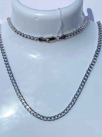 Серебряная родированная цепочка, плетение бисмарк с черными фианитами