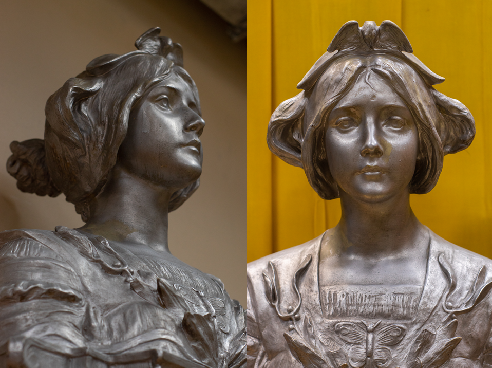 Есть несколько версий, как скульптура могла появиться в библиотеке. Вряд ли она была в ней с момента основания, с 1833 года. Тогда библиотека была бедной, скиталась по разным помещениям: находилась в строении, принадлежавшем Троицкому собору, располагалась в частных домах и в здании Городской Думы. Денег всегда не хватало, работали в библиотеке один-два человека, и то за копейки. Однако скульптура вполне могла стоять во «Внешторгбанке», это было состоятельное учреждение.