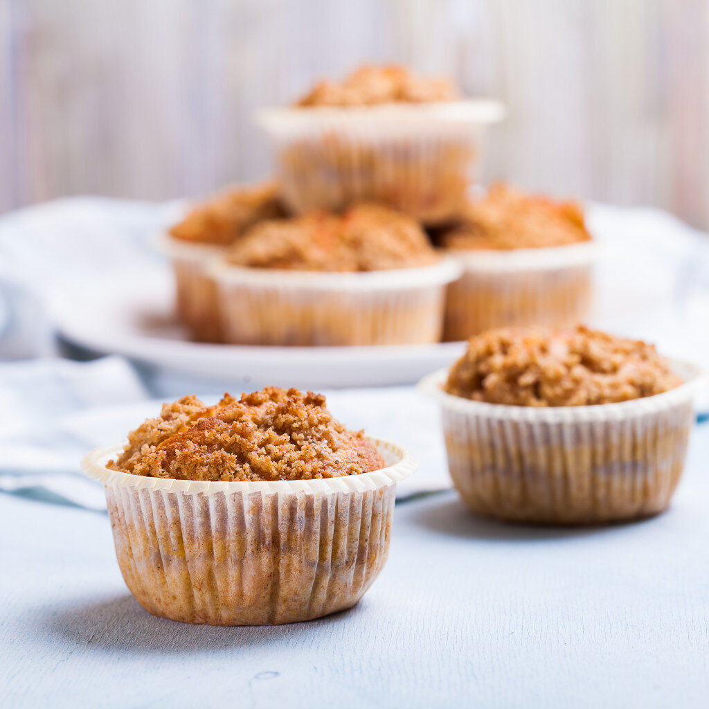 Осень - лучшее время для выпечки с яблоками. Предлагаю вам отличную альтернативу порядком приевшейся шарлотке - нежные и ароматные яблочные маффины с пряным штрейзелем (крошка сверху).