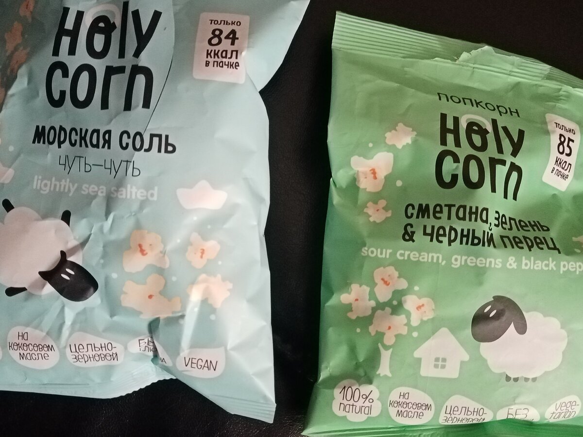 - со вкусом морской соли, 50 гр в пачке, калорийность - 84 на пачку, Holy Corn;