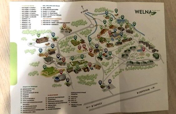 Единственным препятствием может стать необходимость проезжать сквозь Серпухов. После того, как повернете в Тарусу, останется проехать всего пару минут, и вы увидите стелу с надписью Welna. Далее вы подъедите к КПП со шлагбаумом и парковкой перед ним. Подойдя к охраннику, надо назвать свою фамилию и вам откроют шлагбаум и предложат проехать на парковку уже внутри комплекса.