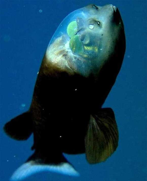Малоротая макропинна – рыба, которая высматривает добычу через свой прозрачный лоб.