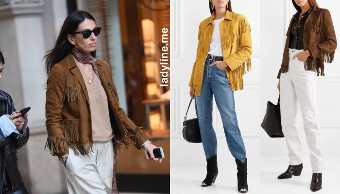Замшевые или куртки денима с бахромой еще одна вещь, без которой сложно будет составить идеальный повседневный или праздничный тематический аутфит. Любой повседневный образ наполнится колоритом, если его завершить актуальной курткой. Данную актуальную вещь можно смело комбинировать с брюками, миди юбками, джинсам и всевозможным стилистическим верхом, эта деталь вашего гардероба поможет вам выглядеть выразительно и ярко.
