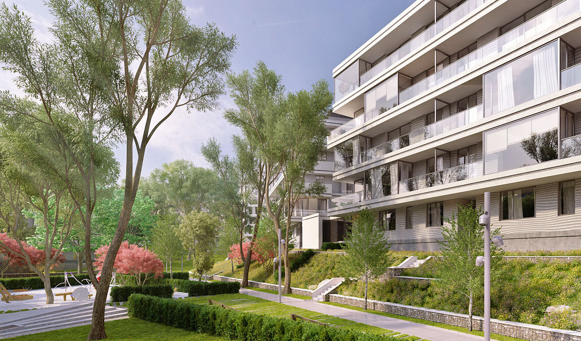 Благодаря этим элементам, комплекс позиционирует себя как удачный альянс загородной и городской жизни.