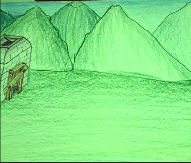 Мы спустились по горной тропинке. Перед нам открылась редкая картина: широчайшая длинная долина. По обе её стороны шли горы. На некотором расстоянии от склона на ровной площадке стояла небольшая церковь, почти вся покрытая строительными лесами. По правой стороне на некотором расстоянии от гор примерно на середине горной гряды стоял необычный домик. И церковь, и дом сложены из камней горной породы.