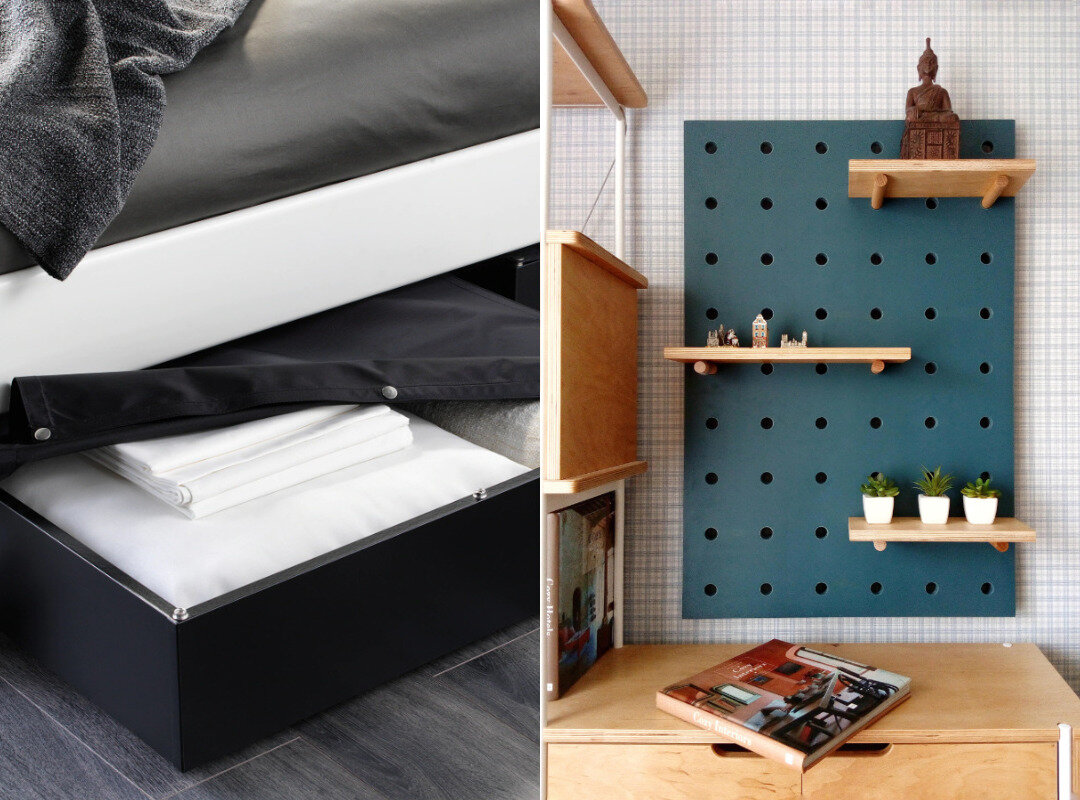 Старая-добрая система «забросить» что-то под кровать в современном интерьере получила серьёзные изменения. Теперь для этих целей существуют специальные сумки-чехлы на молниях, дополнительные полочки и многое другое.