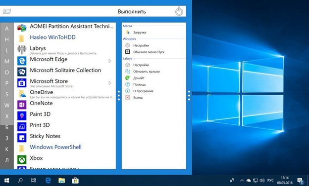 Обзор начнём с довольно нестандартного и современного решения от разработчика Labrys – это меню Пуск, объединённое с командой Выполнить.