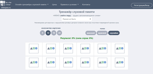 Не так давно я начала играть на сайте interpass.ru, который рекомендован для взрослых с нарушениями речевых центров головного мозга при отсутствии повреждений органов слуха, а также для всех желающих усилить слуховую память.