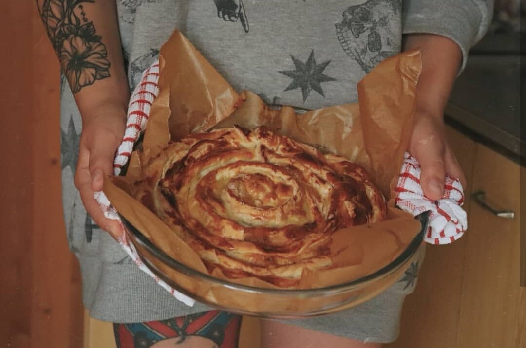 Вертута- пирог из соленого теста, в классике, с творогом, зеленью и яйцами.