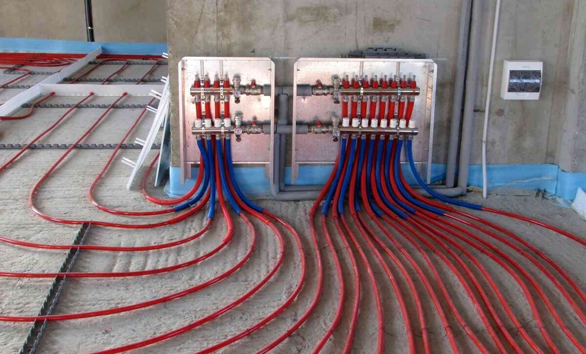 - Проверка герметичности. Перед тем как делать стяжку, рекомендуем вам проверить трубу под давлением. Воду сливать не нужно — она не позволит трубе смяться под слоем стяжки.