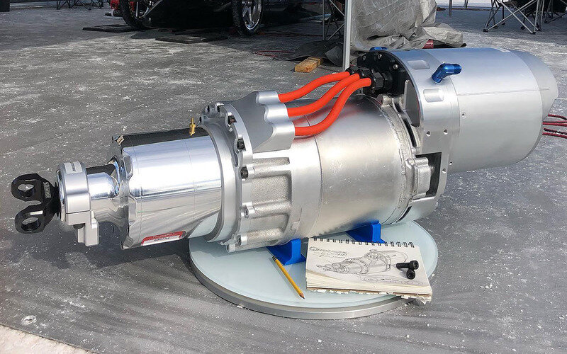 Электромотор создала компания Tesla в сотрудничестве с Revolt Systems для Ford Mustang 1965 года. Двигатель скомпонован так, что легко устанавливается продольно под капотом машины и подсоединяется к карданному валу. При этом для его крепления используют заводские опоры двигателя. Мотор просто прикручивается на «штатное место» и цепляет кардан.