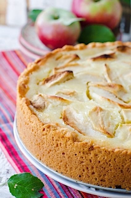 Выпекать яблочный пирог в нагретой до ~180°C духовке ~50 минут