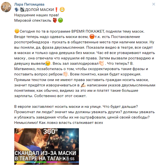 Сорвала спектакль из-за отказа надеть маску. Театр абсурда.