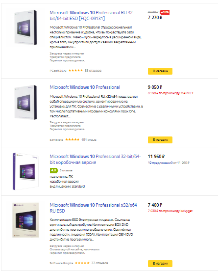 Итак, давайте для начала взглянем на цену за Win 10 pro, которую нам предлагают крупные ретейлеры.