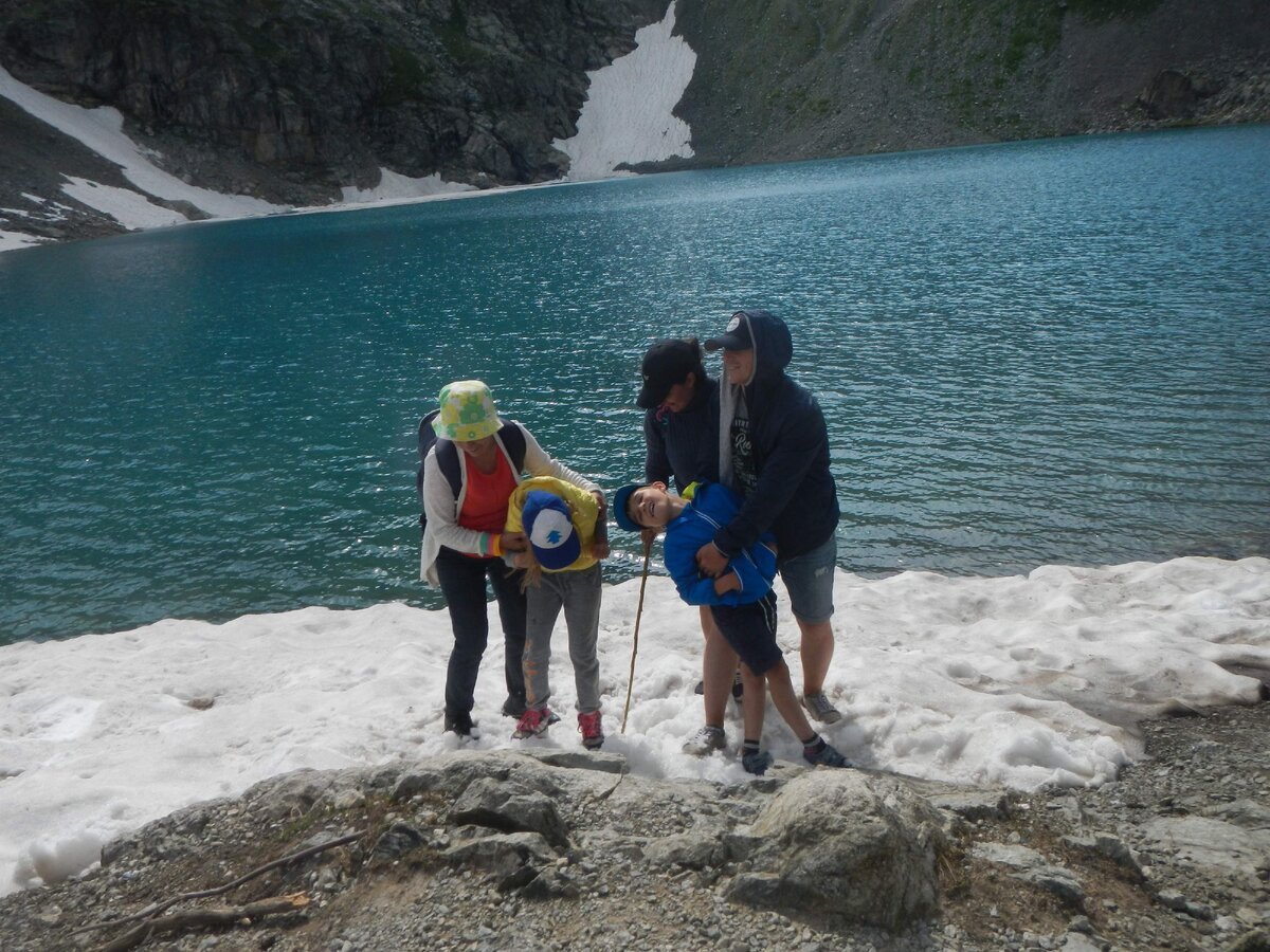 А потом мы дошли до снега. Я вообще-то не собиралась забираться на столько высоко над планетой, чтобы в августе гулять по снегу. Но это было ЧУДО! Я никогда не забуду, как мой сын бежал впереди меня: в шортах, кедах и по снегу!